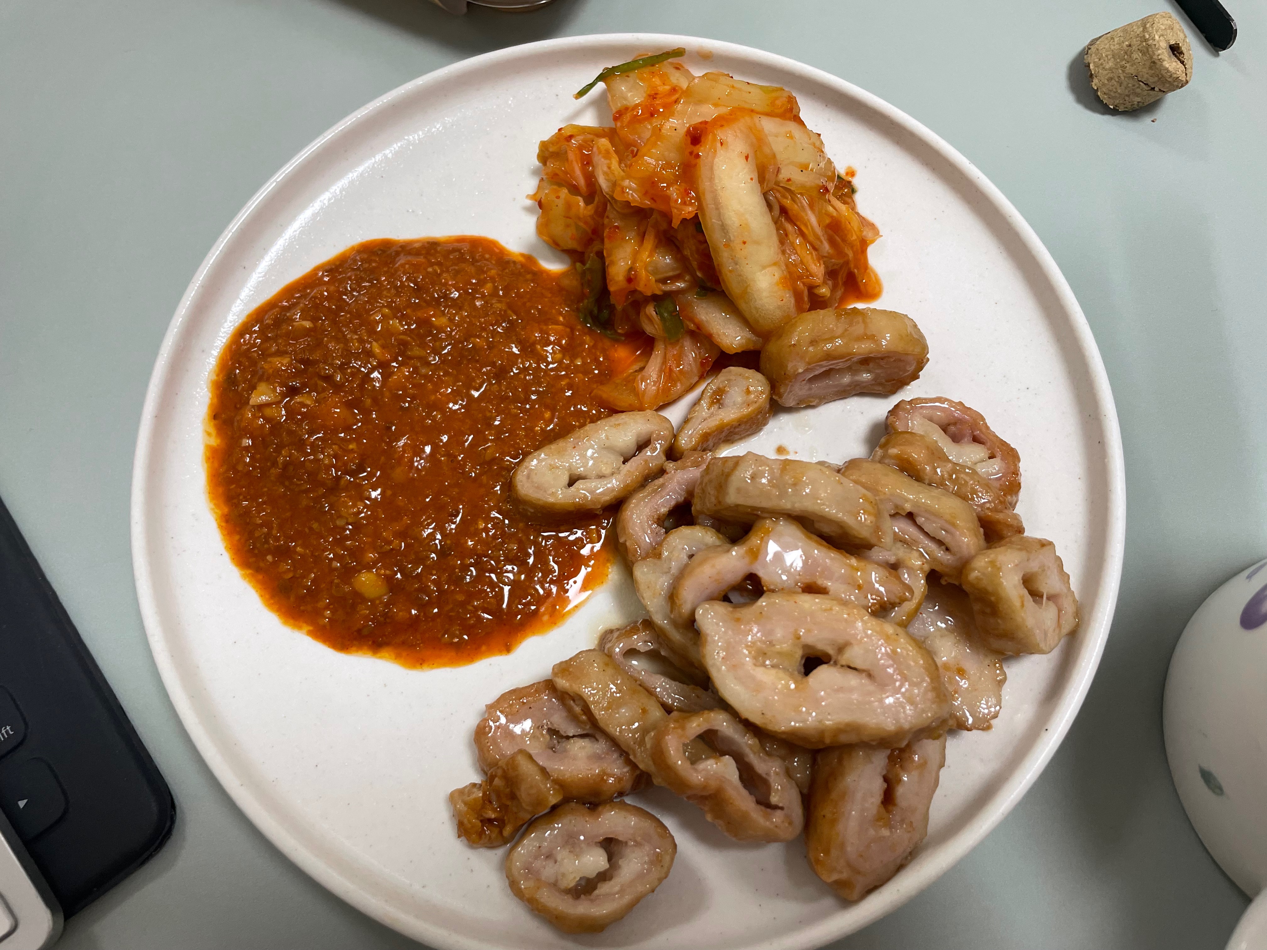 안에 있던 된장소스랑 막창 그리고 비비고 김치까지!